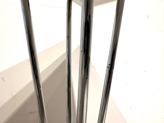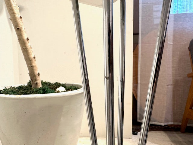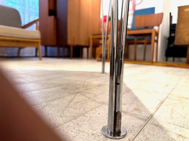 天板にはいくつかスクラッチや小さな打痕、脚のメッキ部分にいくつかの剥落がありますが、使い込まれた雰囲気として大きく気になるほどではなく全体としては清潔感のある印象です。