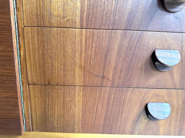 天板の縁や引き出し前面に数か所補修跡やスクラッチがありますので、画像にてご確認ください。