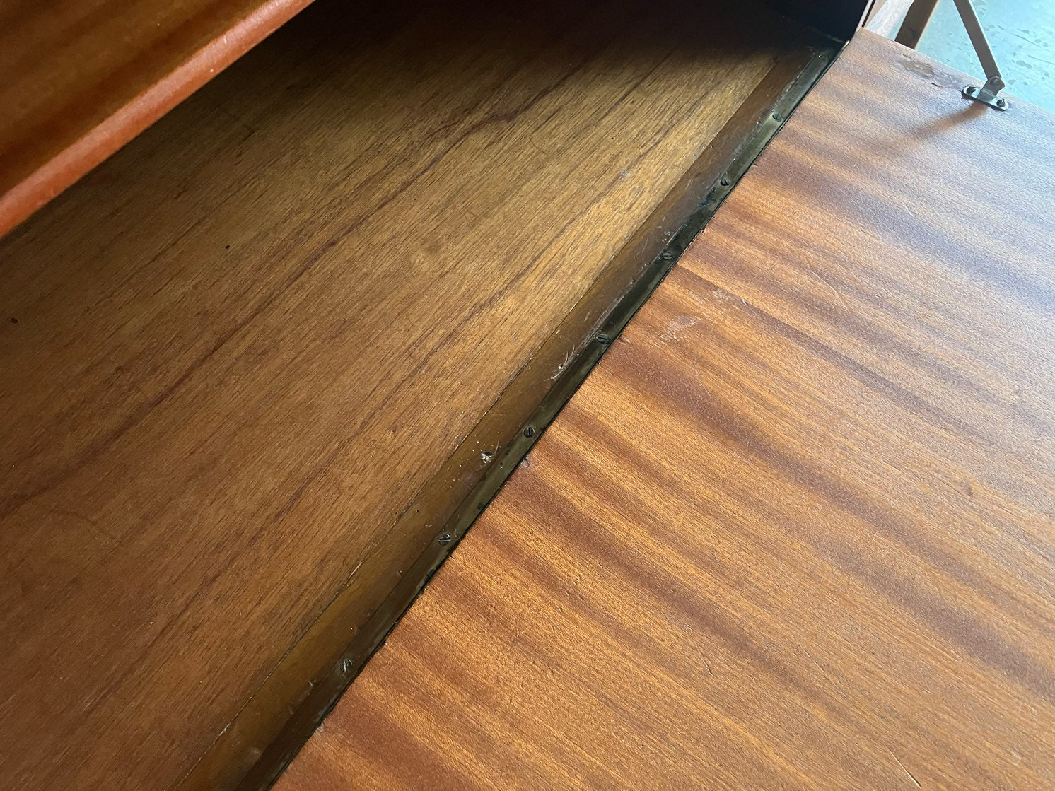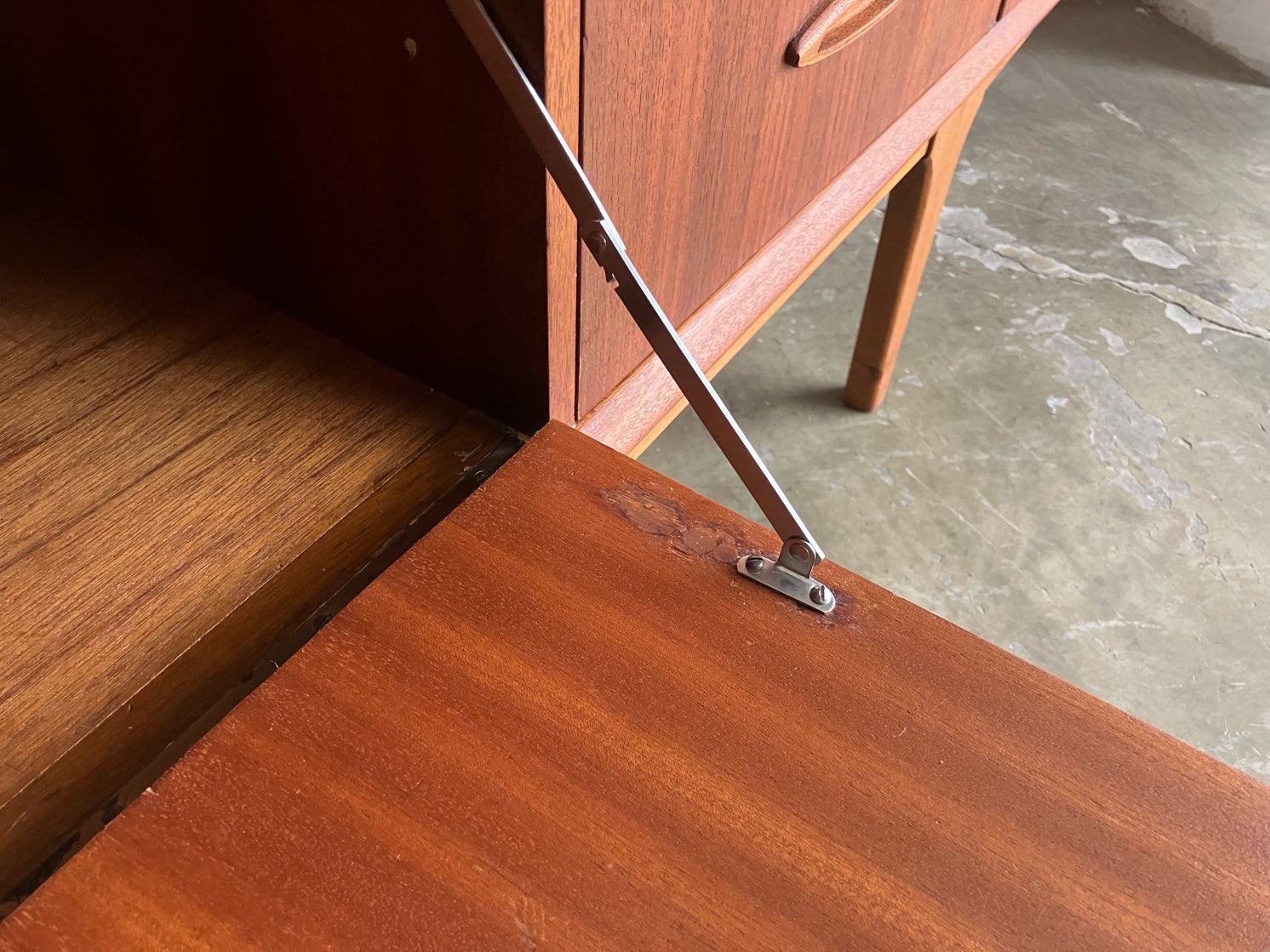右前脚に補修痕あり。オリジナルでは脚先に真鍮のアジャスターが付いているのですが破損していたため取り外した状態での販売となります。