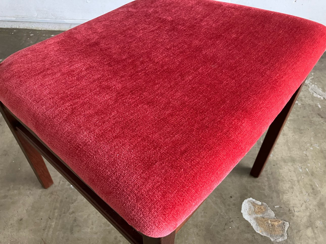 内部ウレタンは新規交換し、座面にはオーストラリア製のベルベット調ファブリックで張り替えました。