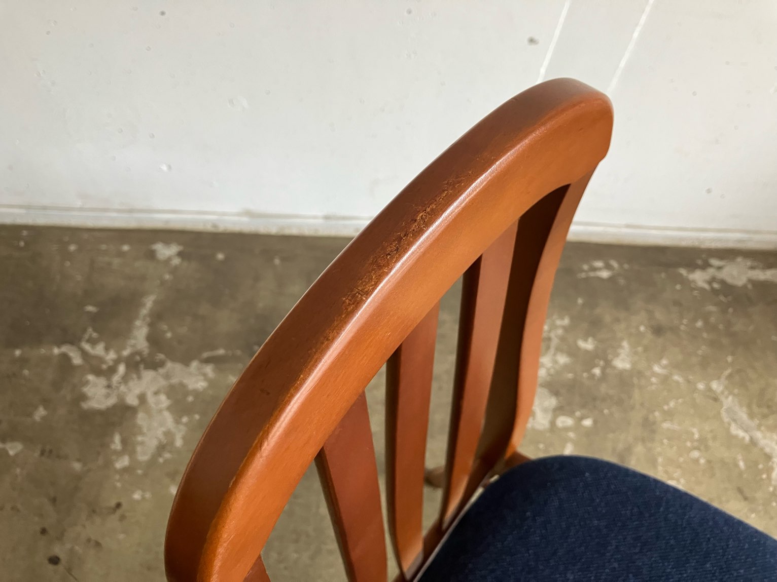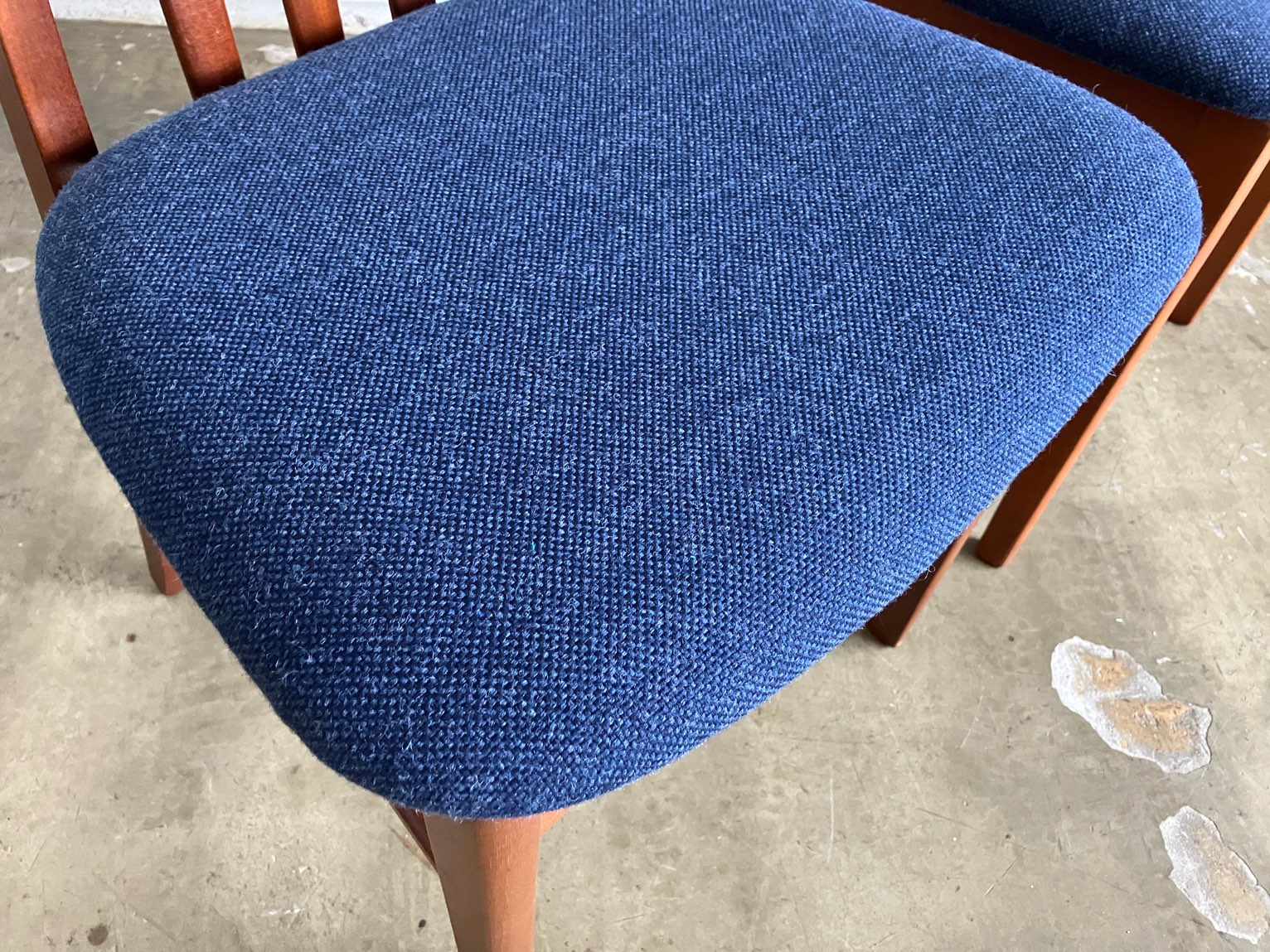 座面は内部ウレタンを新規交換し、国産ファブリックで張替え済み。