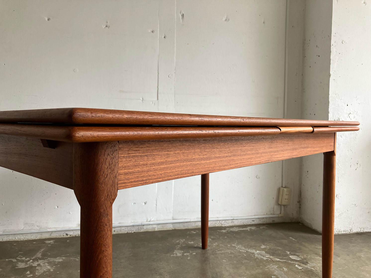 チーク材のデンマーク製ドローリーフテーブルです。