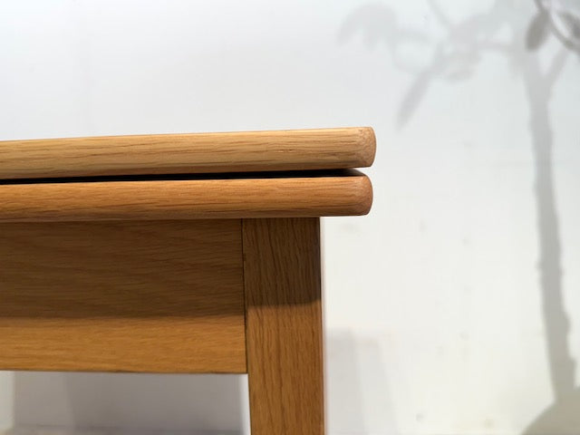 オーク材の素直な質感が心地良いテーブルで見た目はかなりすっきりとした印象。
