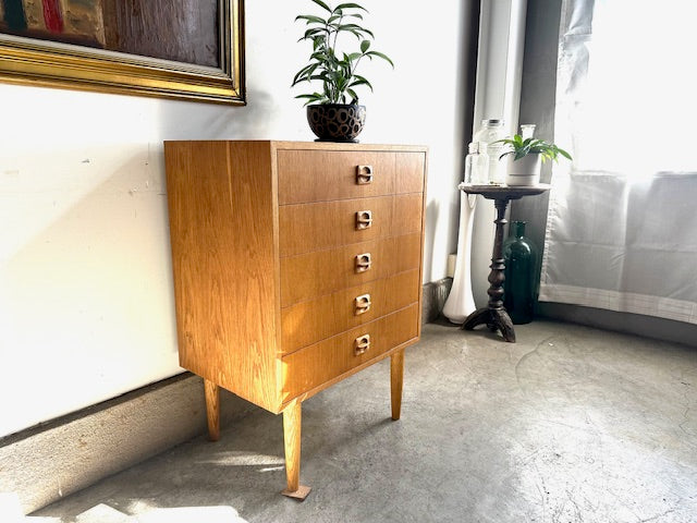 オーク材の経年による深みのある黄色味が美しく、小ぶりで珍しいサイズ感になるので置き場所を選ばず様々な使い方が楽しめそうです。