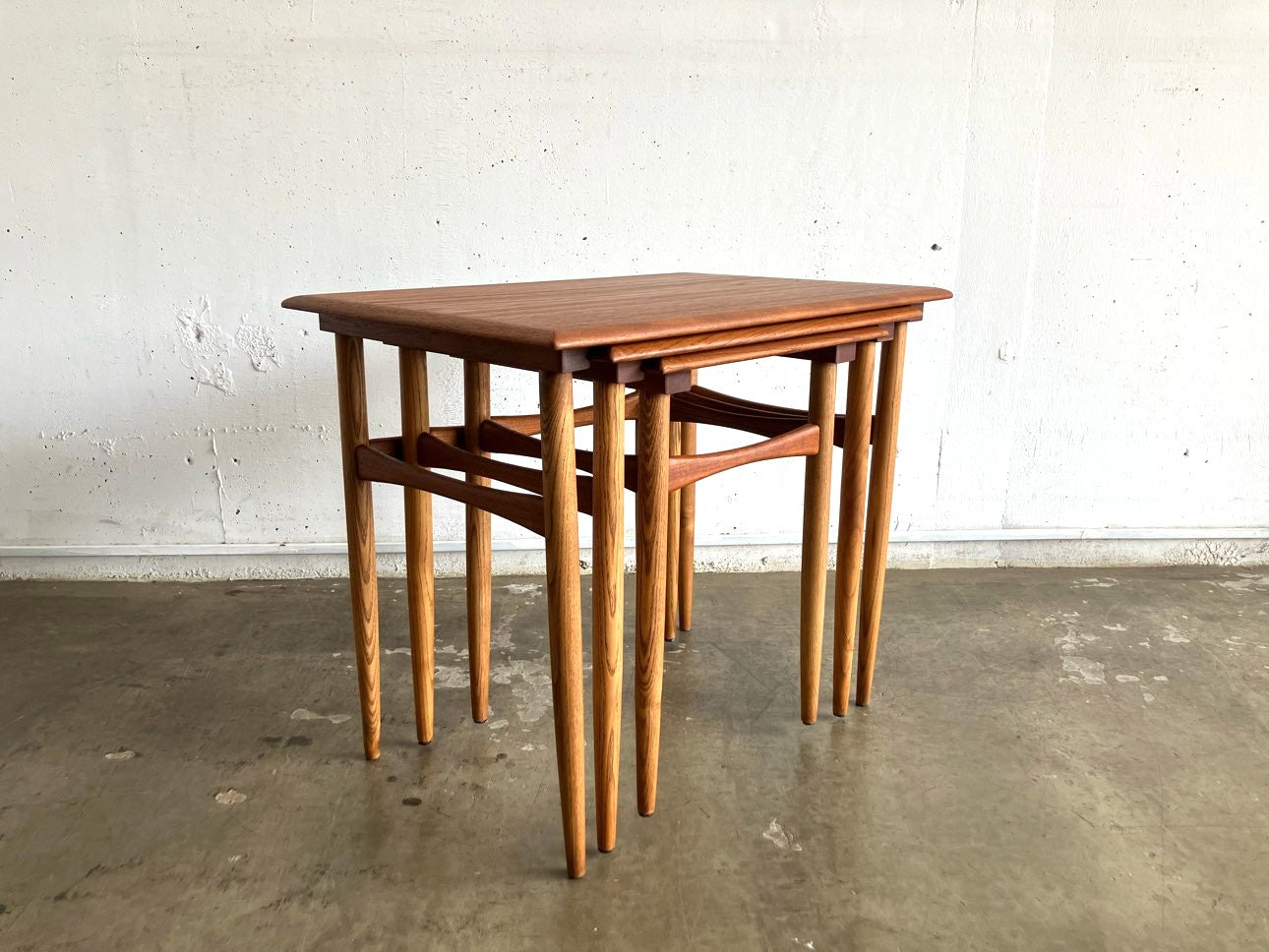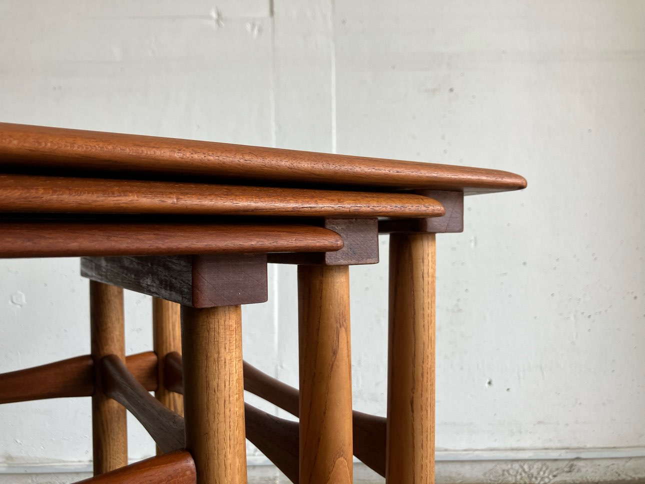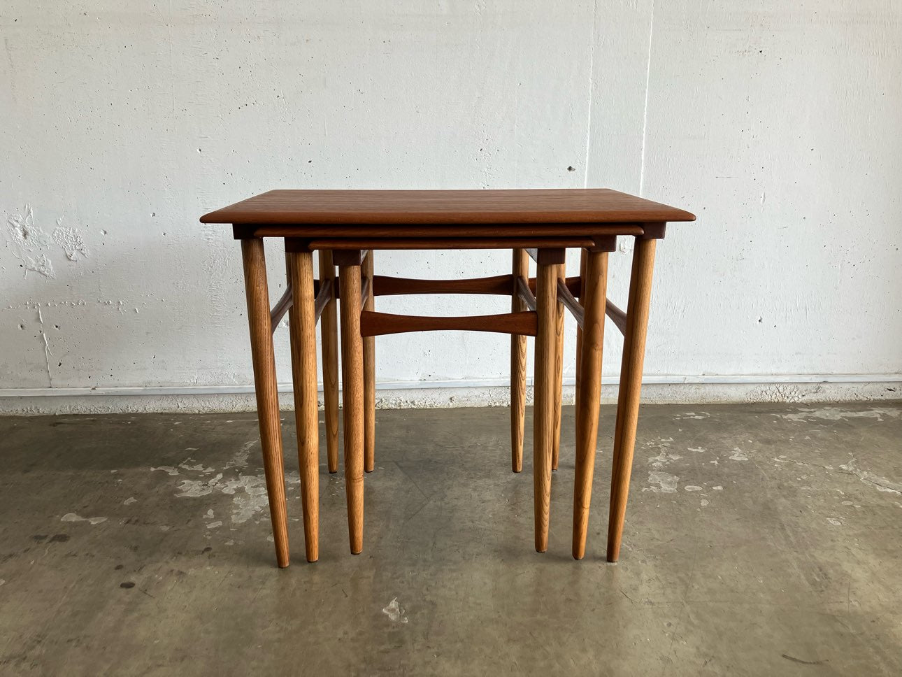 チークとオークのコントラストの効いたデンマーク製ネストテーブルです。