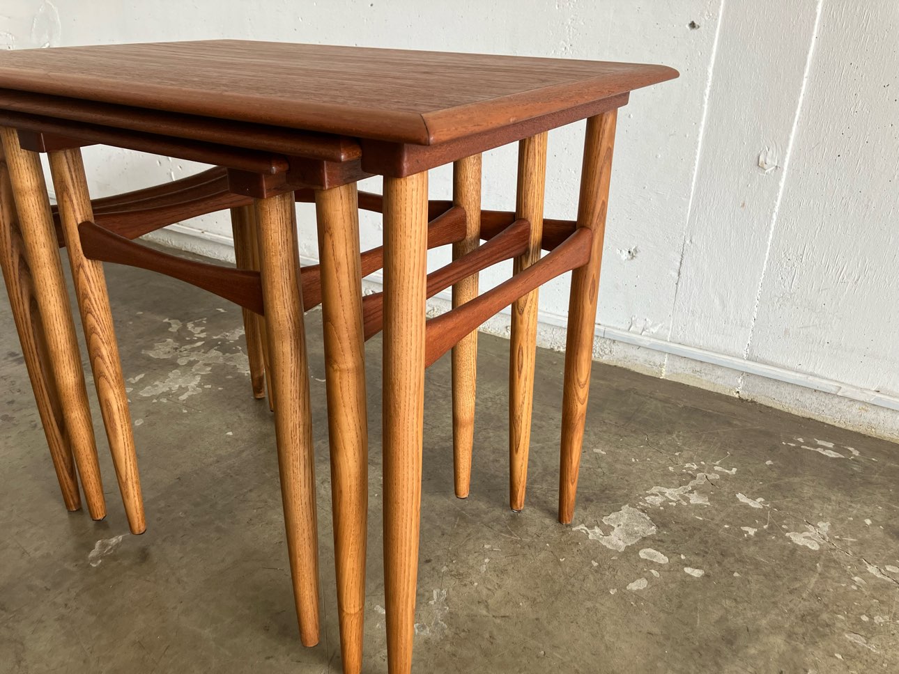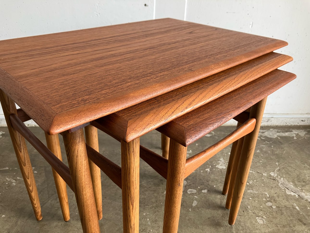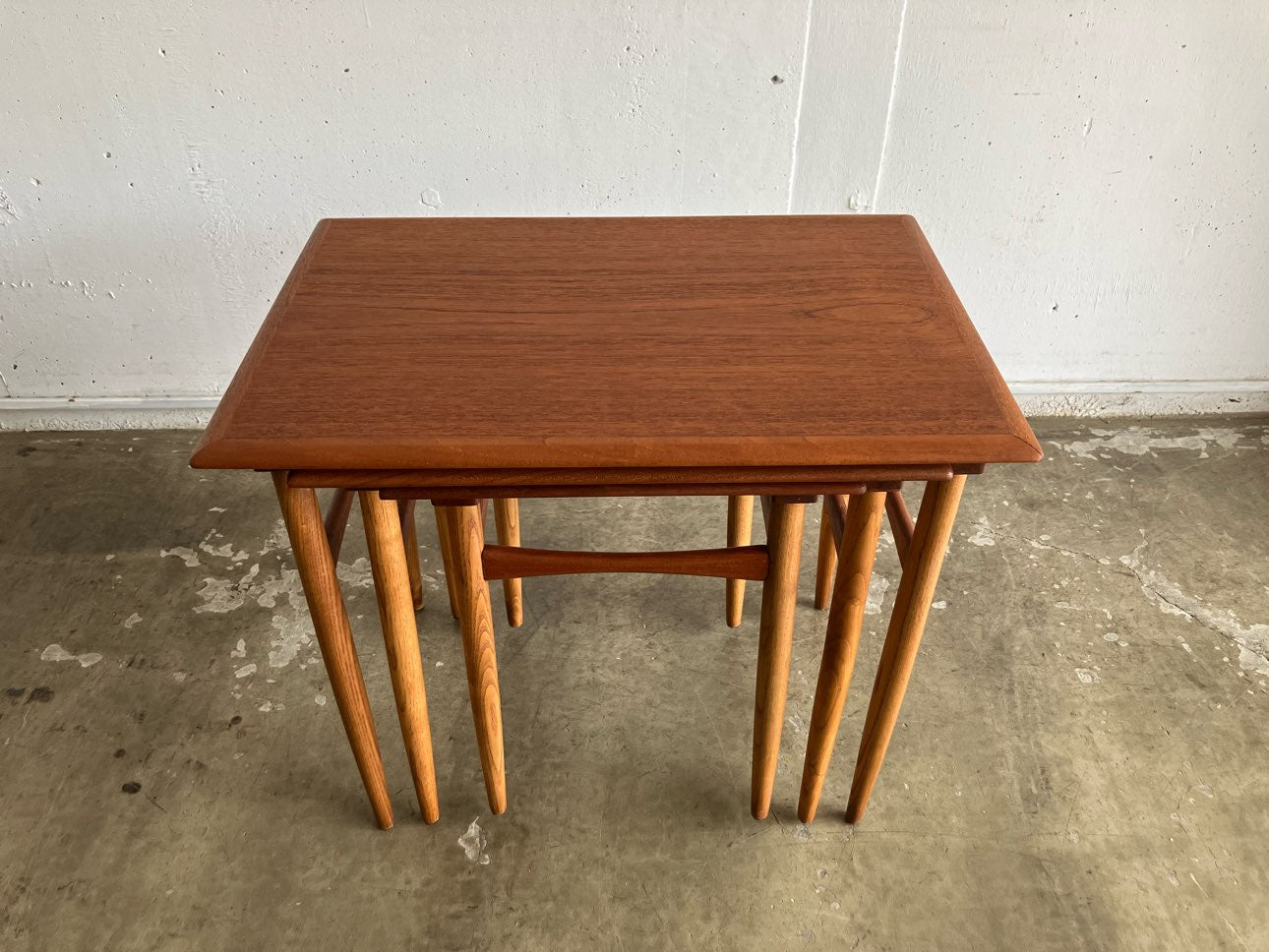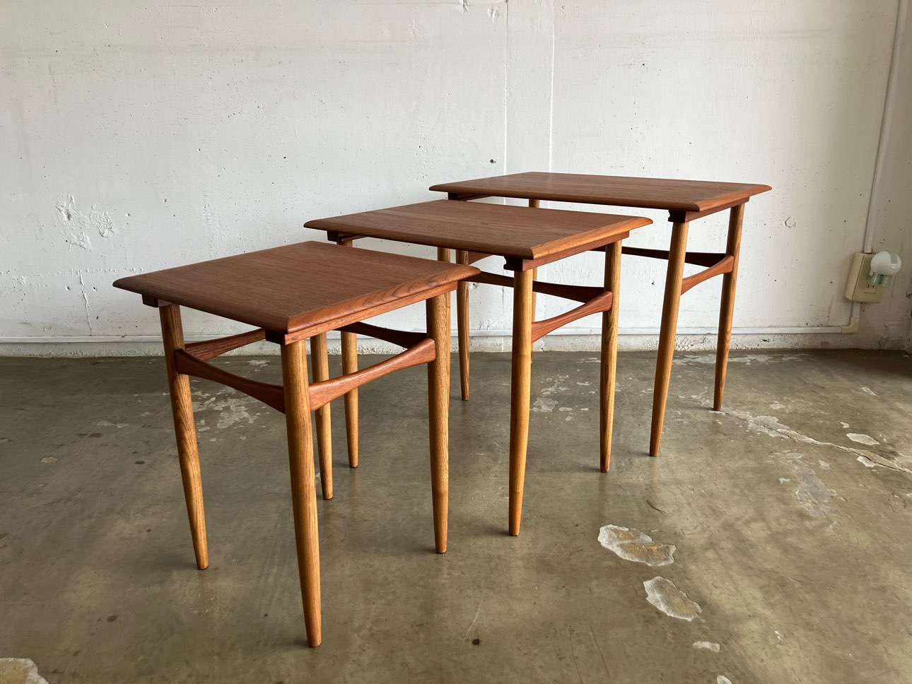 チークとオークのコントラストの効いたデンマーク製ネストテーブルです。