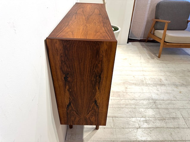 ローズウッドの深い色合いとグラデーションのある美しい杢目が印象的なシェルフです。
