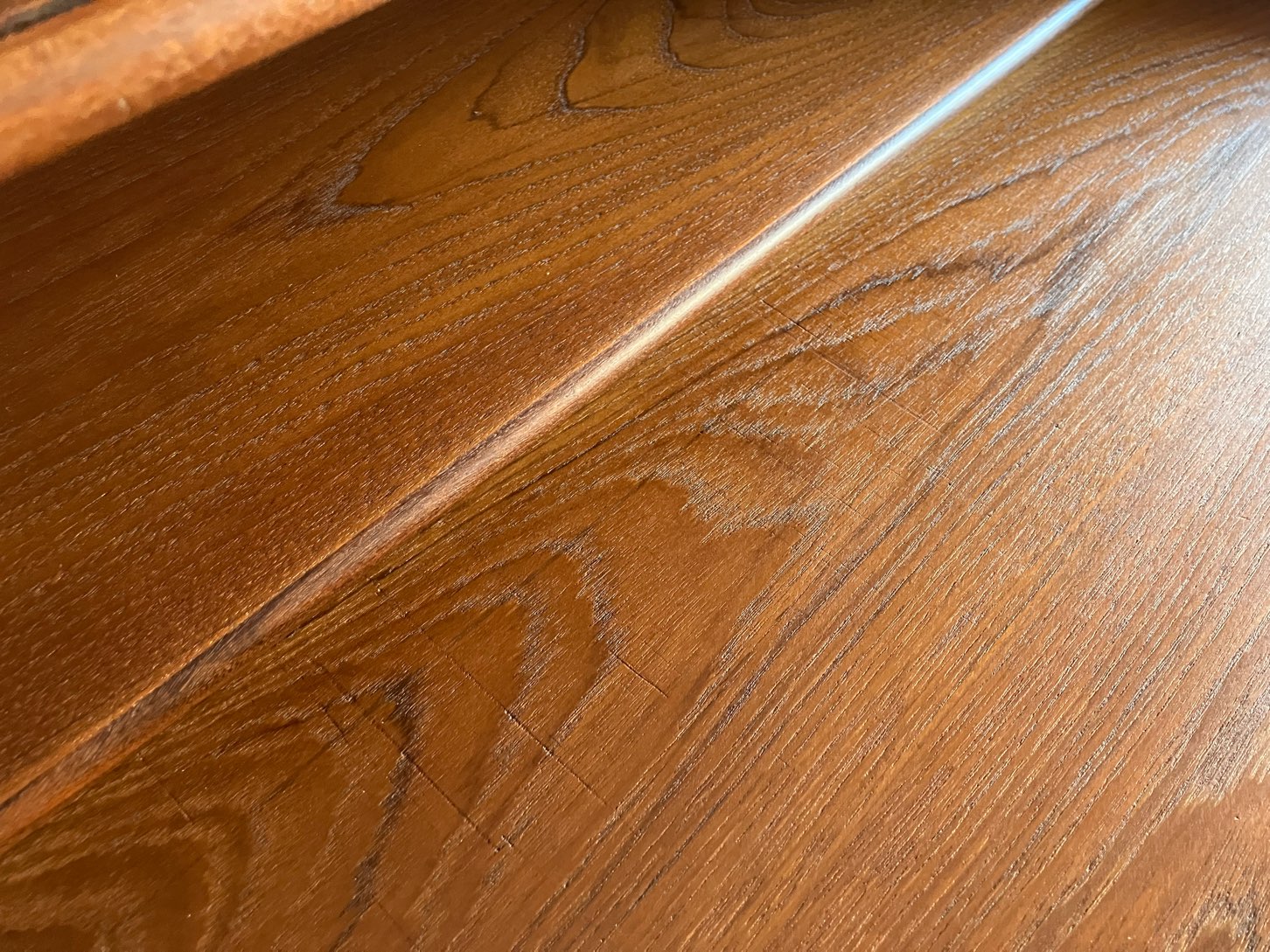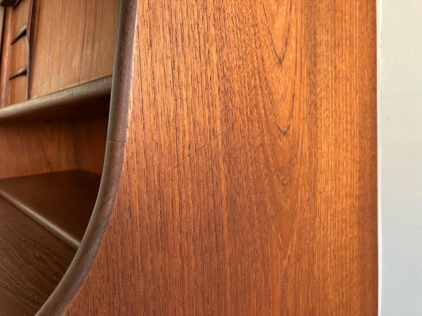 上部右側引戸に穴埋め痕、デスクトップ部や右側面に線キズ等細かな修理やダメージが見られます。