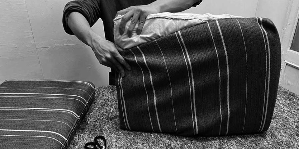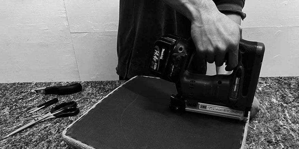 チェアやソファ、スツールなどのファブリック面は生地及び内部ウレタンを新規に交換・張替します。ウェービングベルトの交換や必要に応じて座板や背板の補修や作り直しも行います。